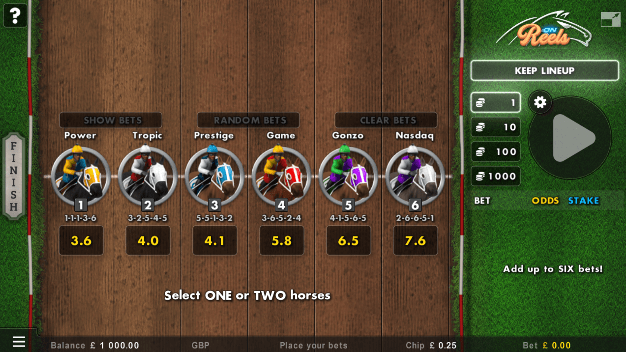 The player selects a single-player game and places a bet.